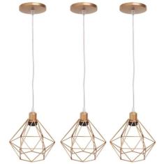 Kit 3 Pendente Aramado Diamante Luminárias Lustre Cabo Cristal Pequeno Teto Retrô Agp Ilumini