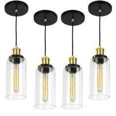Kit 4 Lustres Pendentes Château Cilindrico Vidro Gold