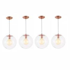 Kit 4 Pendente Redondo Esfera 30Cm Vidro Cristal Madelustre