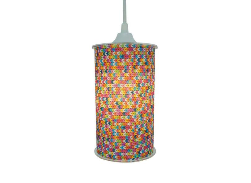 Luminária Pendente Cilíndrica Crochê Crie Casa Colorido