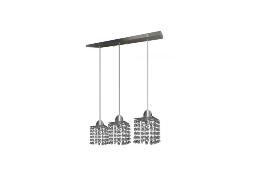 Luminária Pendente Cristal Legítimo Quadrado 3 Lâmpada