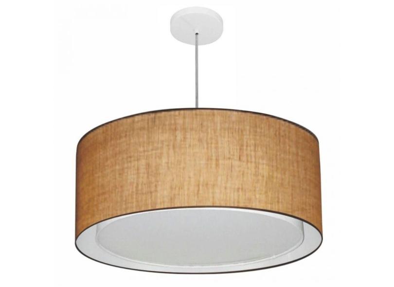 Lustre Cilíndrico Duplo Md-4298 Tecido 60x30cm Bivolt Palha