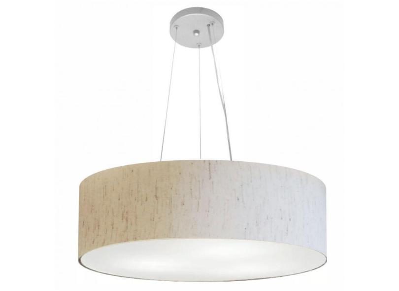 Lustre Cilíndrico Md-4136 Tecido 80X15cm Bivolt Linho Bege