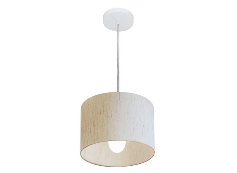 Lustre Cilíndrico Md-4201 Tecido 25X25cm Linho Bege Bivolt