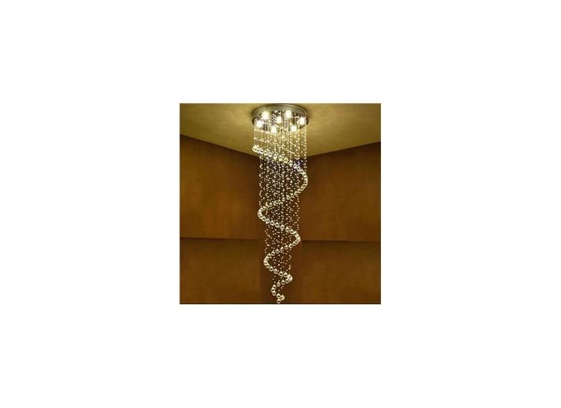 Lustre De Cristal Legítimo Espiral Com 3,20 Metros De Altura, Base De Inox Polido 40CM De Diâmetro
