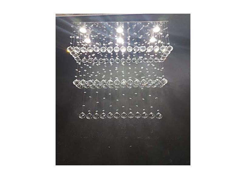 Lustre de Cristal para Sala de Jantar/Estar com 40cm de Altura, Base de Inox Polido 70X20cm