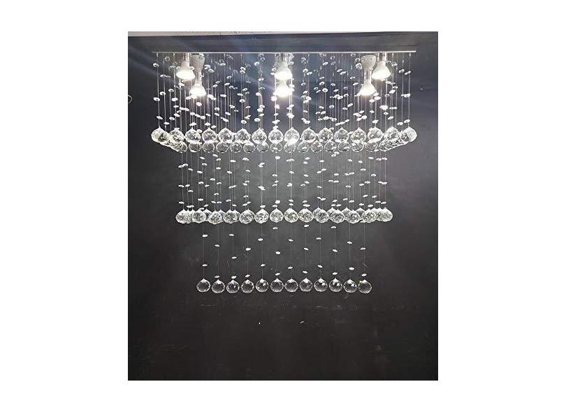 Lustre de Cristal para sala de jantar/estar com 60 cm de altura, base de inox polido 70X20 cm