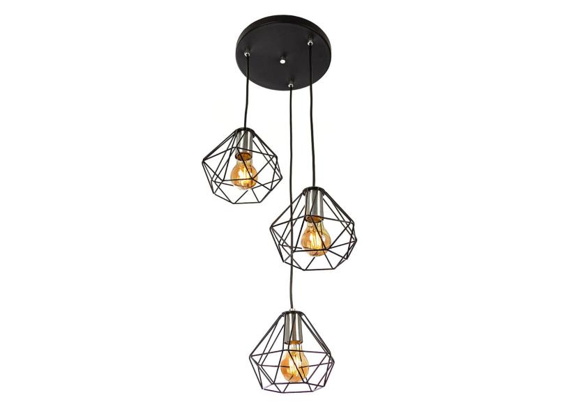 Lustre Luminária Pendente Aramado Diamante Triplo