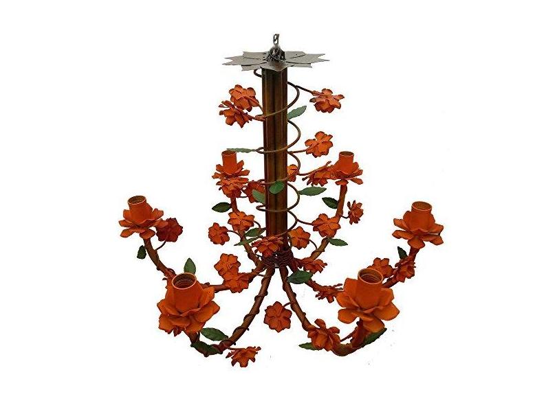 Lustre para Sala Decoração com Flores de Ferro Artesanal Varias Cores