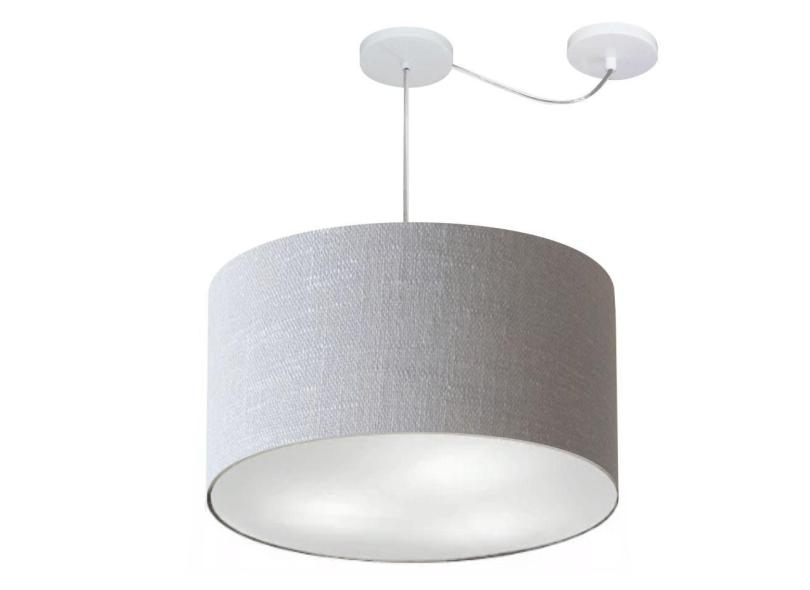 Lustre Pendente Cilíndrico Com Desvio Md-4235 Cúpula Em Tecido 45X30cm Rustico - Bivolt