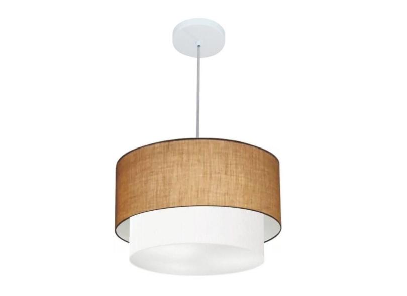 Lustre Pendente Duplo Cilíndrico 40x35cm Bivolt Palha