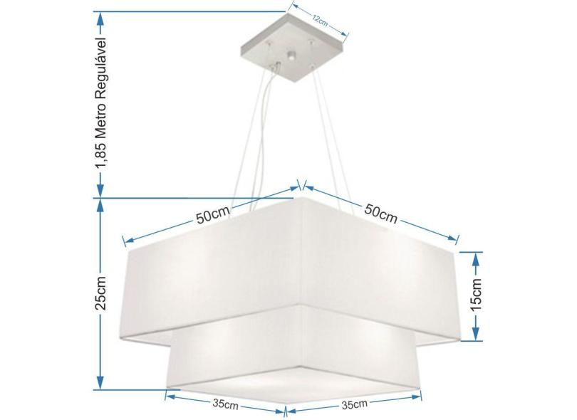 Lustre Pendente Duplo Quadrado Vivare Md-4066 Cúpula Em Tecido 50X35cm - Bivolt