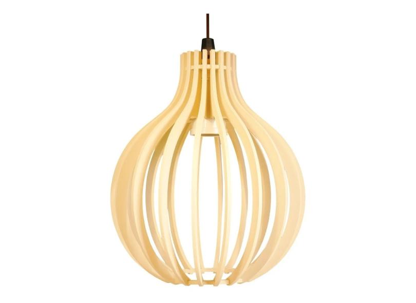 Lustre Sala Luminária Cozinha Pendente Bar Redondo De Madeira 21x18cm - Marfim