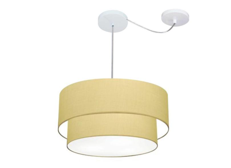 Pendente Duplo Cilíndrico Desvio 50X40cm Bivolt Algodão Crú