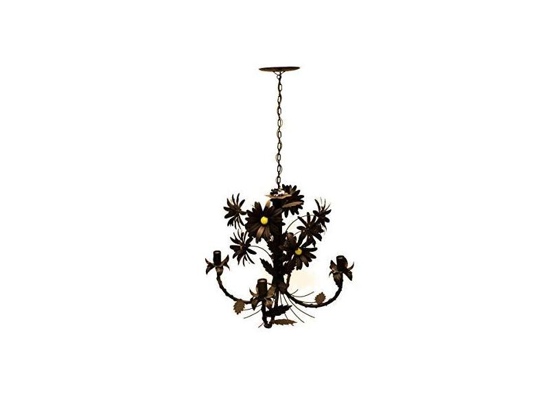 Pendente para Sala Artesanal de Ferro Rústico Flores 4 Braços