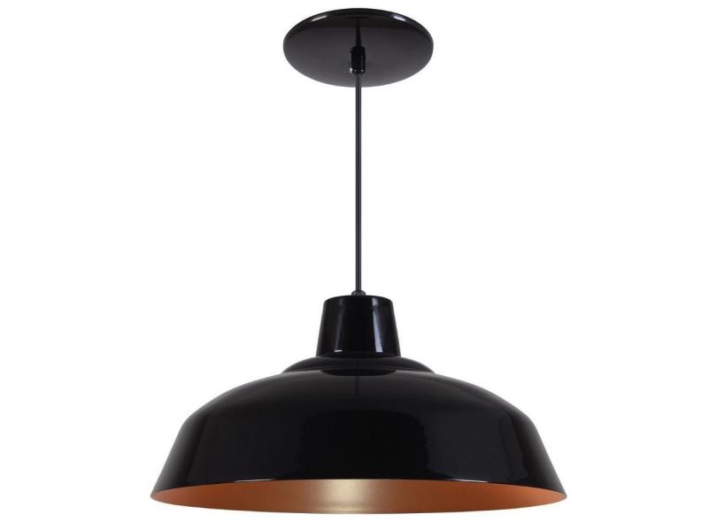 Pendente Retrô 34cm Luminária Lustre Alumínio Brilhante C/ Cobre - Rei Da Iluminação