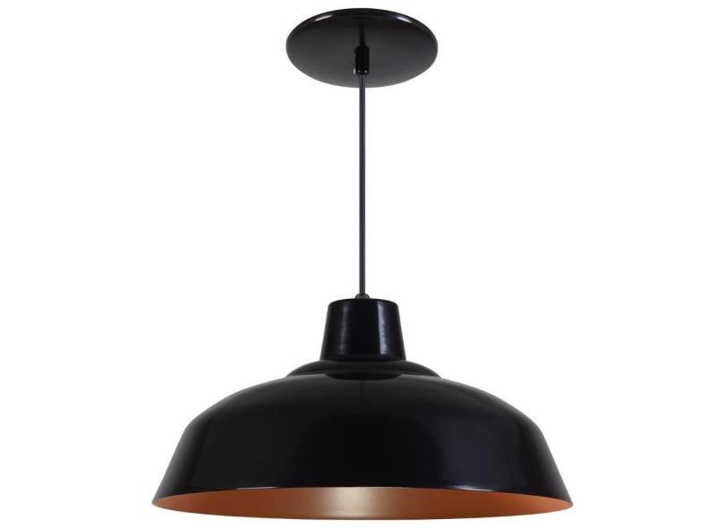 Pendente Retrô 34cm Luminária Lustre Alumínio Fosco C/ Cobre - Rei Da Iluminação