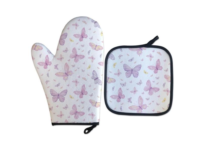 Luva Térmica Para forno Borboletas Lilás Presente Criativo