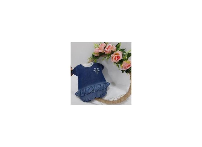 Macacão Bebe Menina Enxoval Curto Jeans Banho De Sol 310