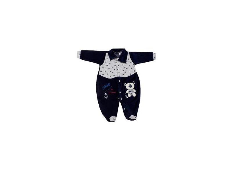 Macacão Bebê Menino Plush Ancoras Pequenos Passos Marinho