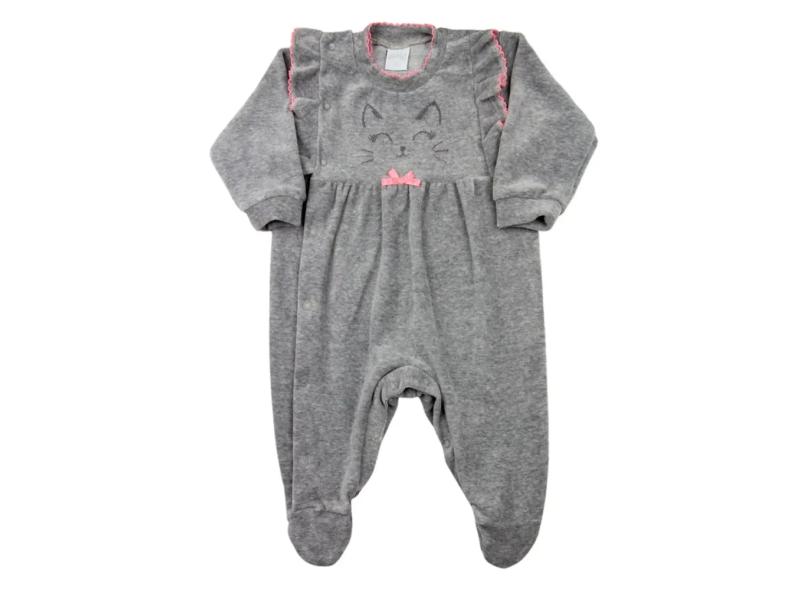 Macacão Bebê Plush Bordado Gatinha com Lacinho - Mescla