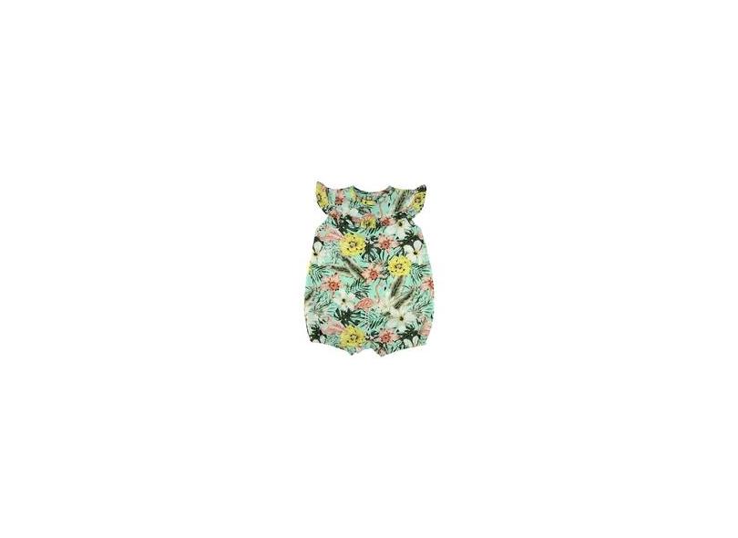 Macacão Bebê Tricoline Estampa Digital Flamingos - Verde