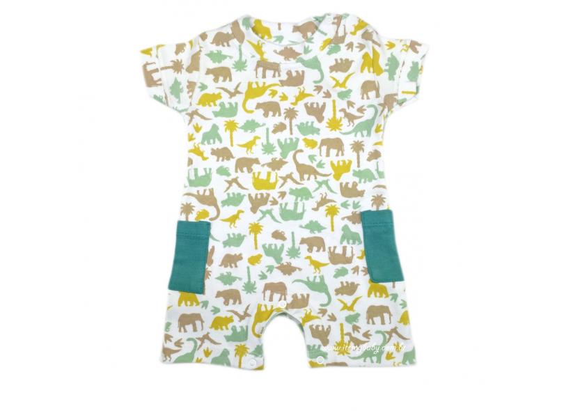 Macacão Curto Bebê Menino Gola Careca Safari 2 Bolsos Pirlipat