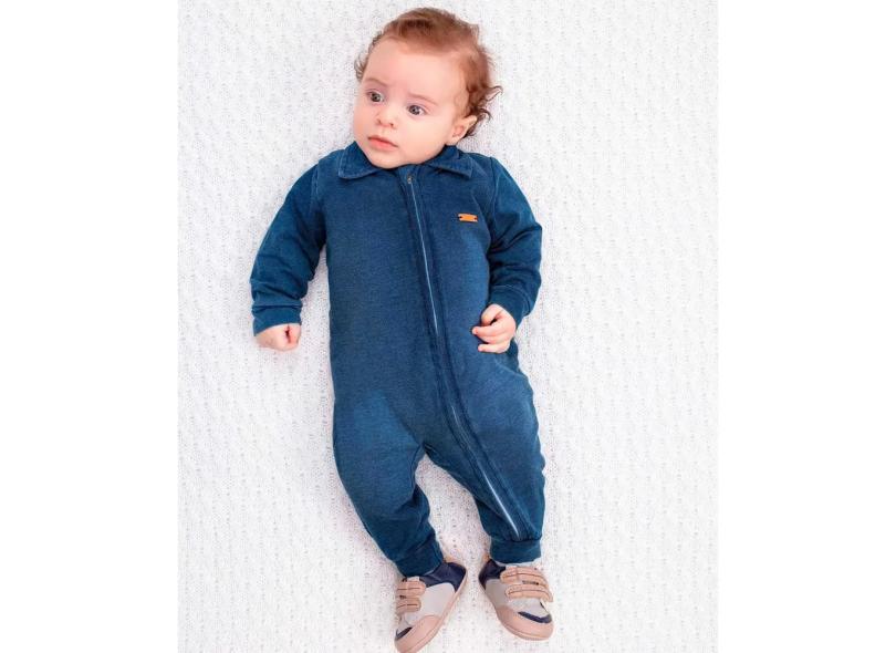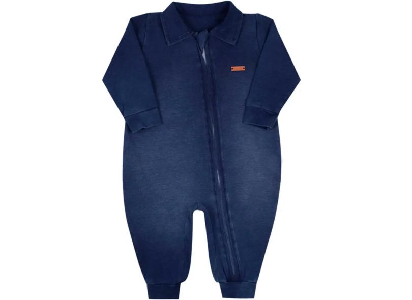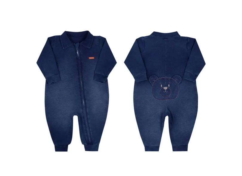 Macacão De Bebê Longo Jeans Com Zíper Masculino Paraiso Ref: 11609 Rn/g