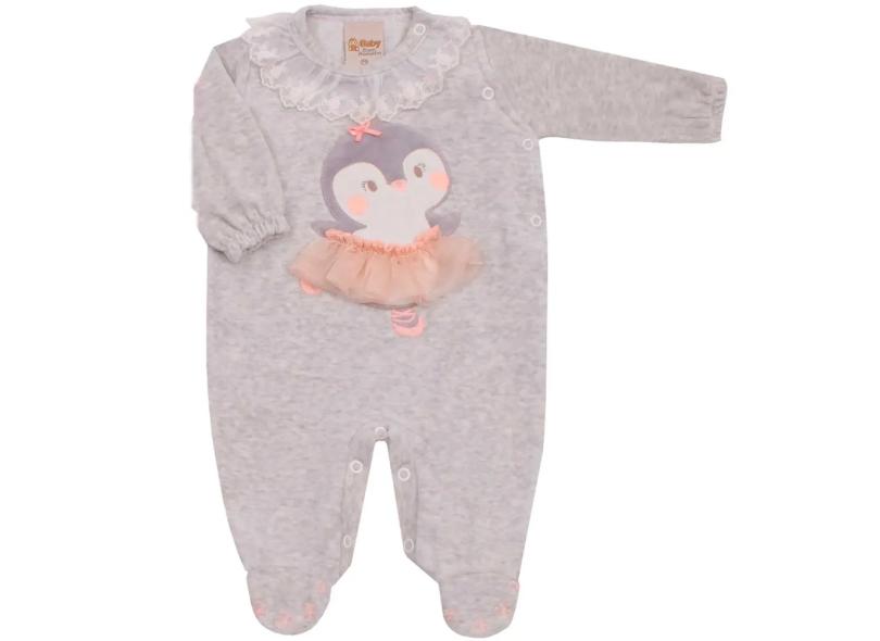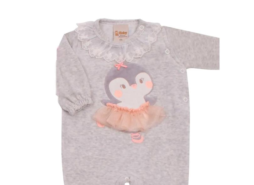 Macacão De Bebê Longo Plush Pinguim Feminino Doces Momentos Ref: 5546 P/g