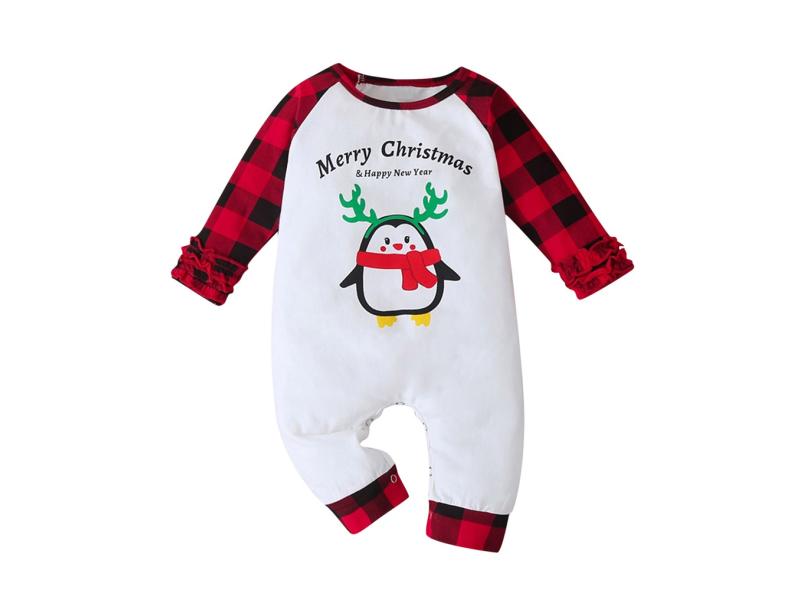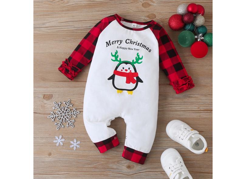 Macacão infantil bebê meninos meninas Natal desenho animado pinguim xadrez com babados macacão -cool