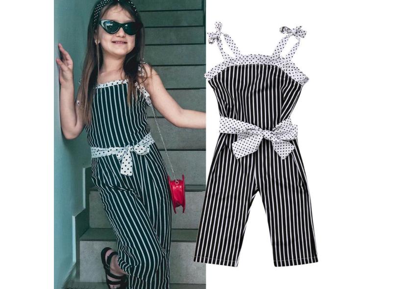 Macacão infantil para crianças bebê menina com alça listrada arco macacão de uma peça -cool