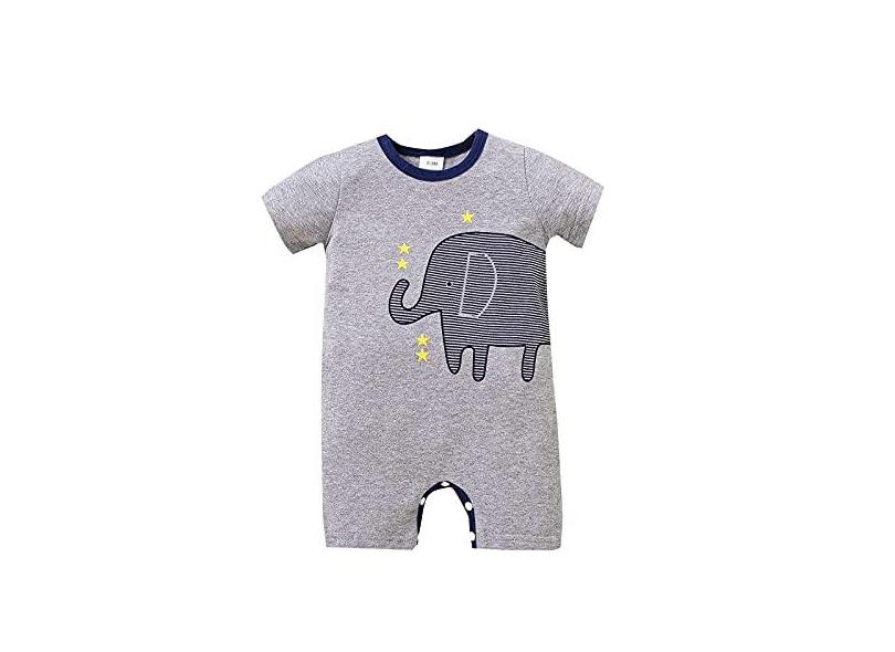 Macacão para bebês meninos de 3 a 18 meses com estampa de elefante listrada, botão frontal, roupa de verão, , 9-12 meses