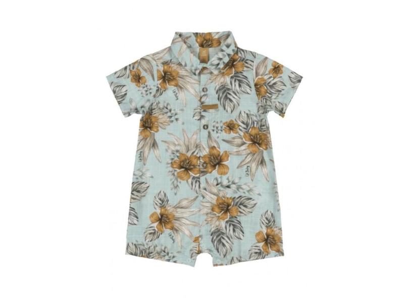 Macaquinho Up Baby Bebê Menino Curta Tecido Floral Verde