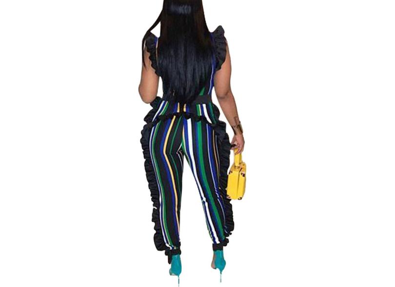 Mulheres Bodycon Listrado Macacão Ruffle mangas Zip Magro Green M