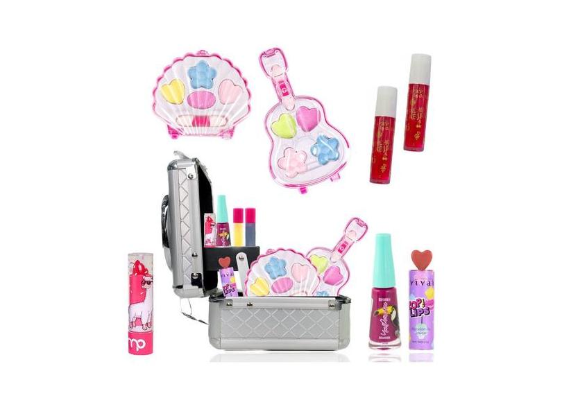 Maleta Mini Kit Maquiagem Infantil Esmalte Gloss Brilho + Mini Maleta Maquiagem Criança Brilho Labial Gloss Esmalte Sombra