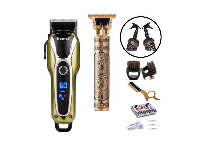 Kit Barbearia Maquinas Kemei Leve Prático Melhor Equipamento - Kemei