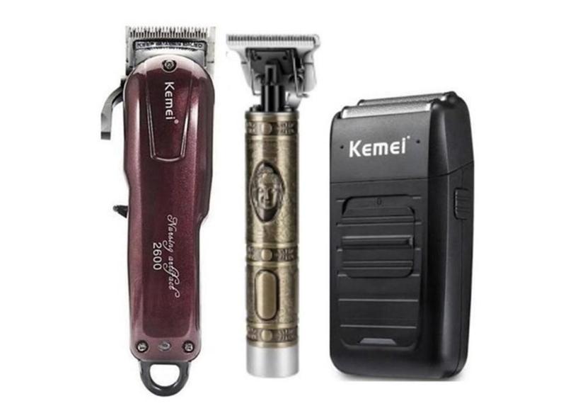 Kit Kemei Profissional Barbearia Corte Acabamento Shaver