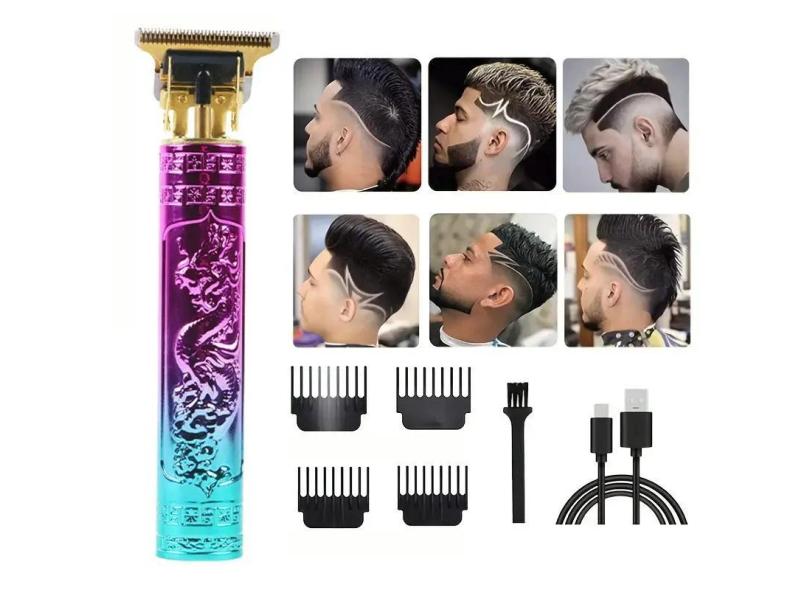 Máquina Cortar Cabelo Acabamento Recarregável Dragão Rosa