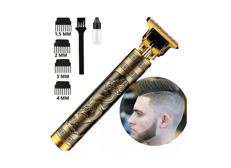 Máquina de Cortar Cabelo e Barba Profissional, Sem Fio, Dragão Dourad