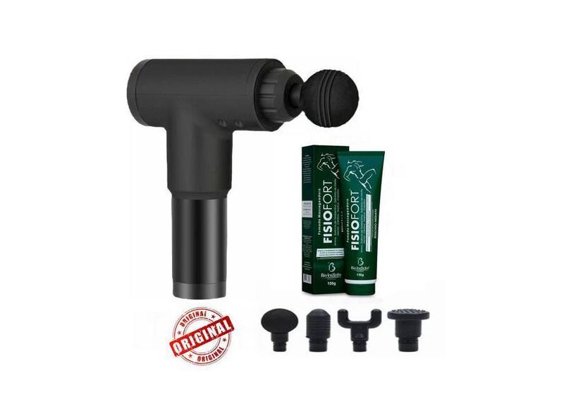 Kit Massageador Elétrico Portátil Muscular + 4 Ponteiras + Gel Fisiofo