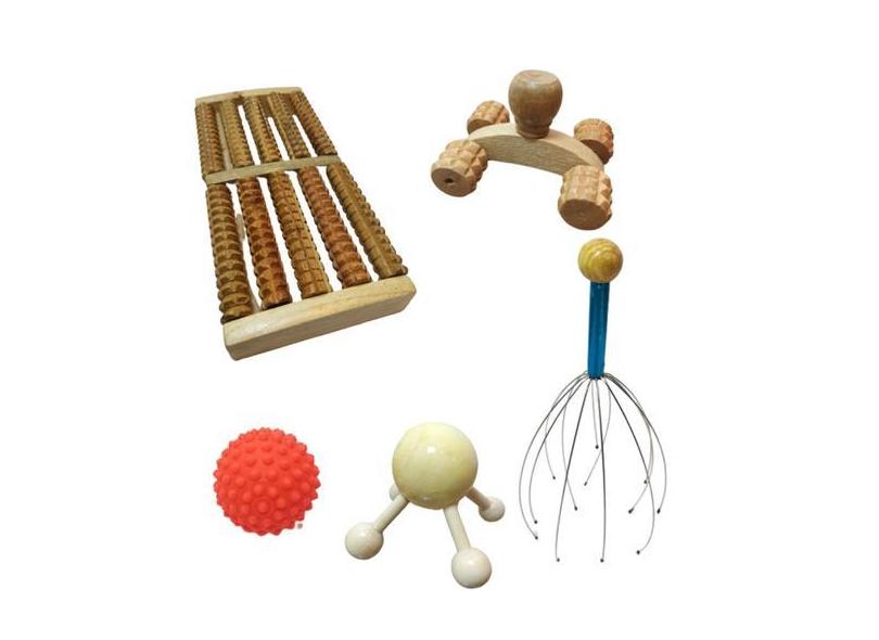 Kit Massageador Para Relaxamento Madeira Corpo Facial Pescoço Costas P