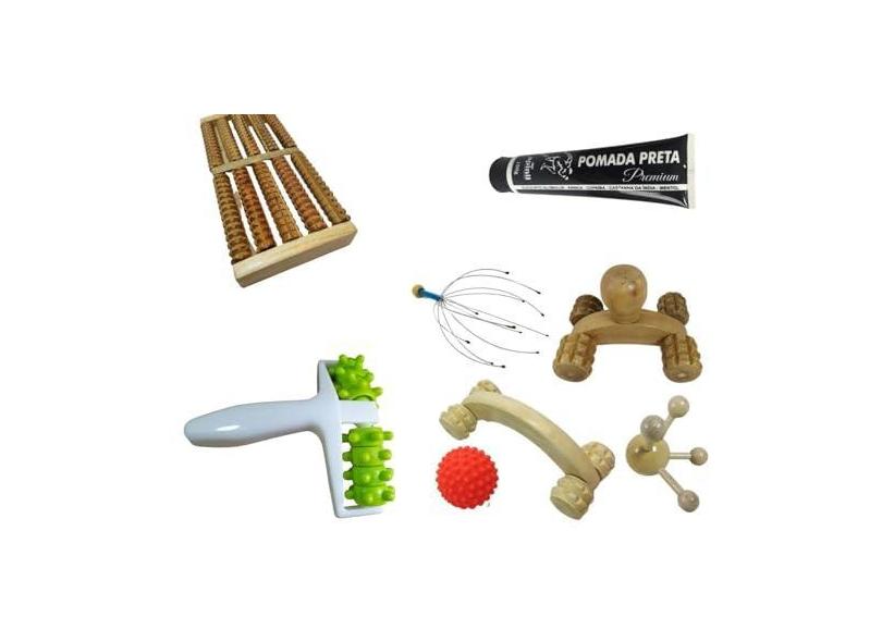 Kit Massageadores Para Pés Pernas Corpo Pescoço Cabeça Ombro Braços Costa 7 Peças e Pomada Preta Bem Estar Presentes