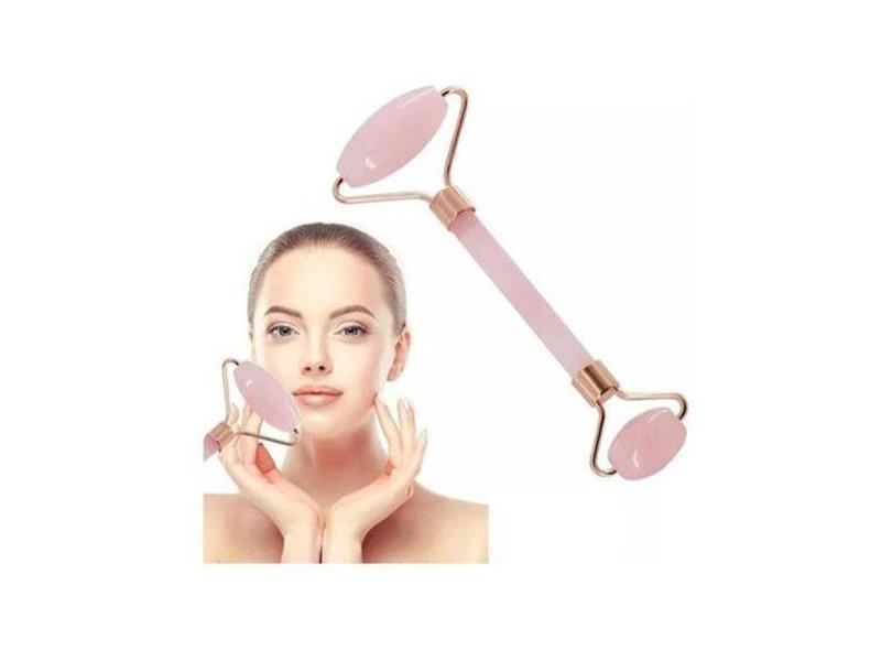 Rolo Massageador Facial Pedra Quartzo Rosa Jade Anti-Rugas Pedra Rosa