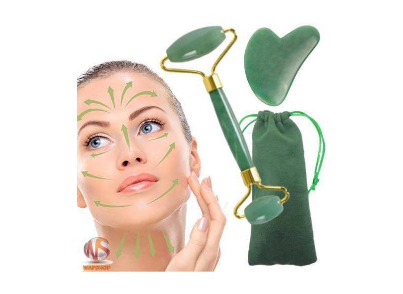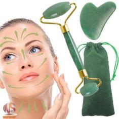 Rolo Massageador Pedra Aventurina Quartzo Verde + Placa Gua Sha - Waps