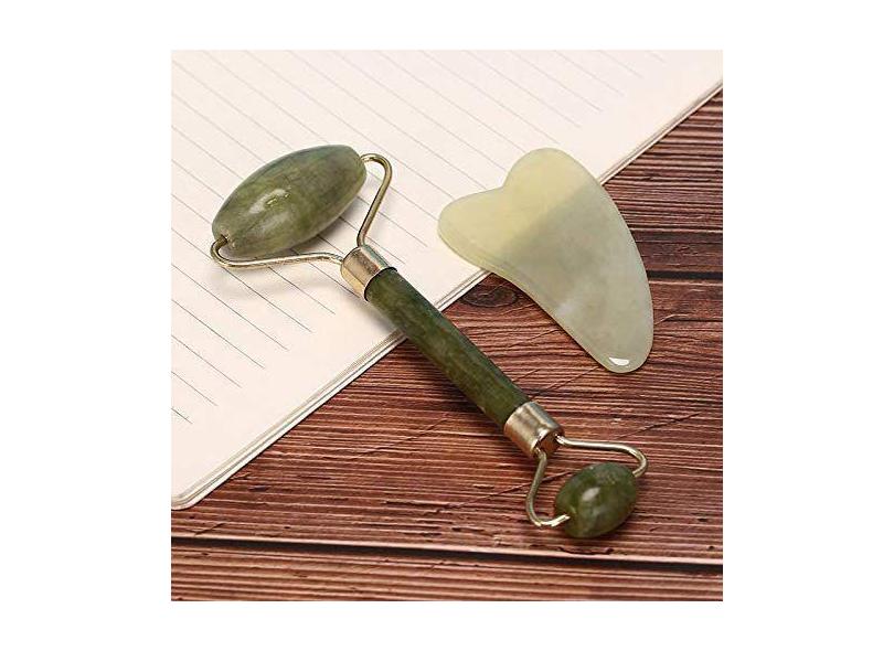 Rolo Massageador Pedra De Jade E Placa De Raspagem Gua Sha - Doisirmao