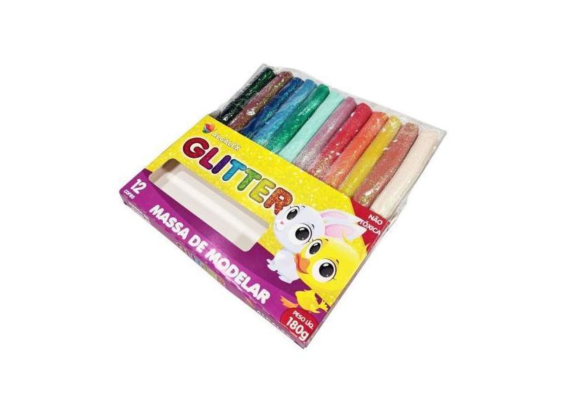 Massinha De Modelar Com Glitter 12 Cores 180G Escolar Papelaria Multiu