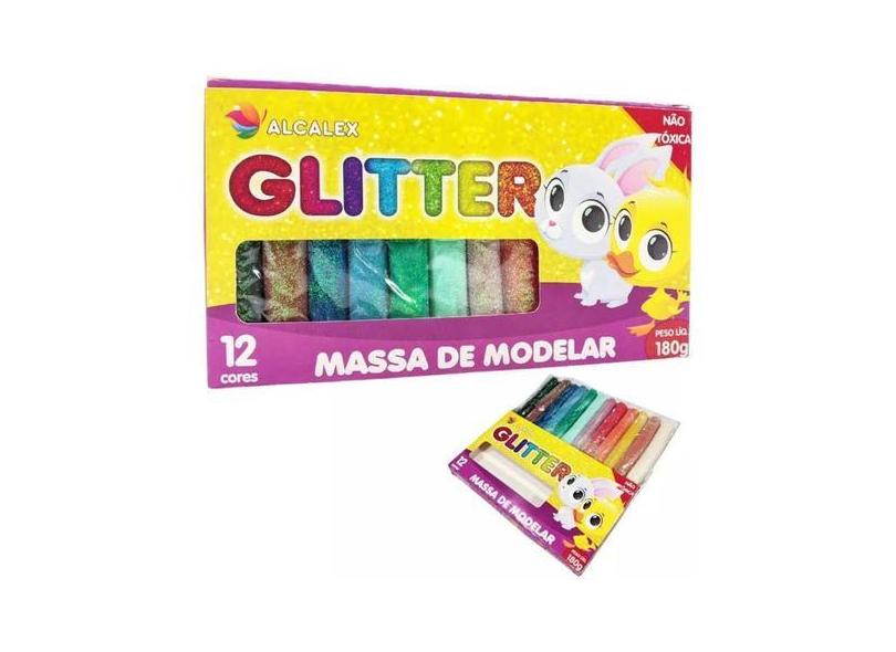 Massinha de modelar com glitter 12 Cores 180g escolar papelaria prátic