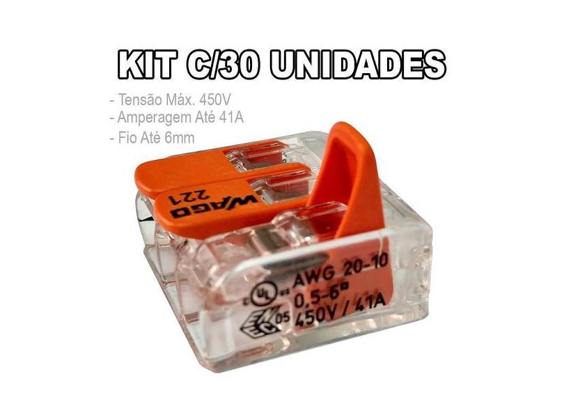 Kit 30 Conector Wago Emenda 3 Fios Mod. 221-613