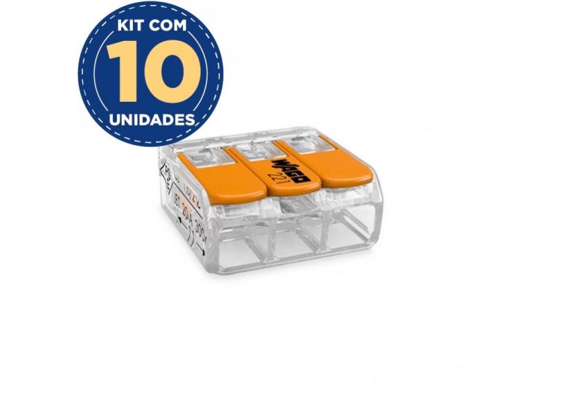 Kit Com 10 Conector De Emenda 3 Polos 1,0A 6,0mm 41a 221-613 Wago