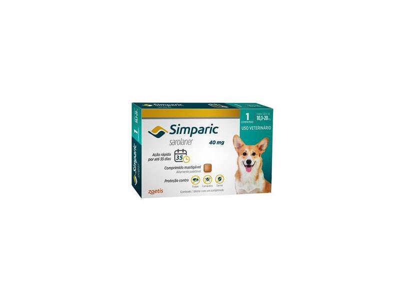 Antipulgas, Carrapatos e Sarnas Simparic 40 mg (Sarolaner) para Cães de 10,1 a 20 kg - Zoetis (1 comprimido)